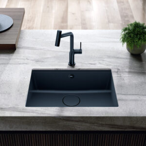 Kompakta pabūvējama izlietne ar elegantām nerūsējoša tērauda detaļām. Zem dekoratīva vāciņa atrodas liels un ērts izvada korķis. Izlietne pieejama 6 toņos Viegli kopjams un karstuma izturīgs izlietnes materiāls Fragranīt+ Sanitized…