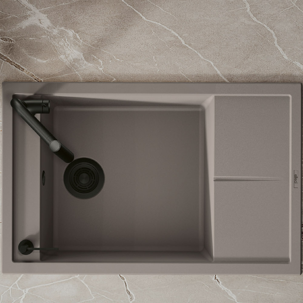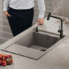 Fragranīta materiāla virtuves izlietne ar simetriskām proporcijām,